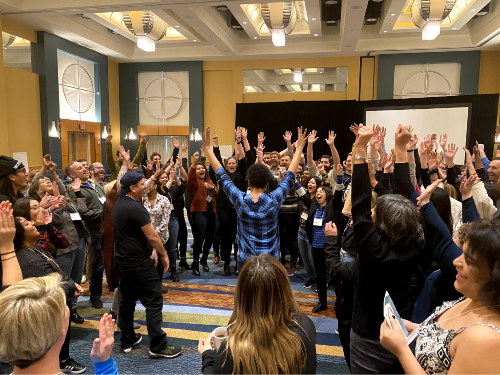 Next, we broke out into smaller groups of 20-25 people, with each group led by a Mindhatch Organizational Improv™ Facilitator.